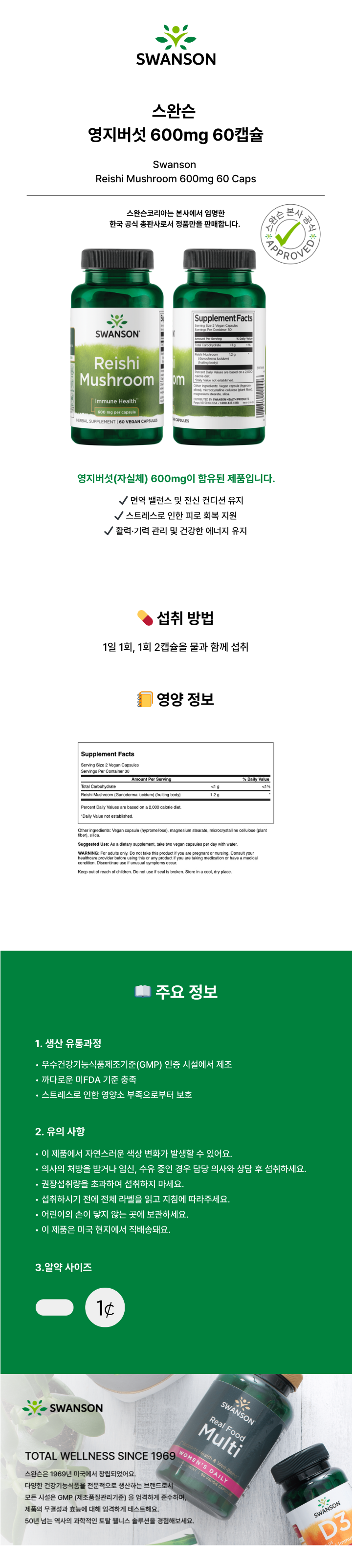 스완슨 영지버섯 600mg 60캡슐 2개